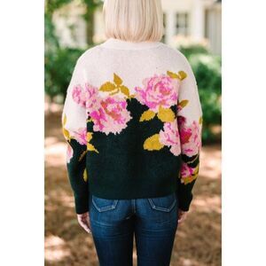 Entro Boutique In This Case Hunter Green Floral SweaterWomen's Size Large