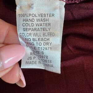 Entro Burgundy Swiss Dot Sheer Feminine Babydoll Flutter Sleeve Blouse Small