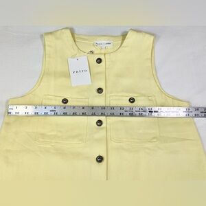 Entro Butter Yellow Sleeveless Mini Denim Shift Dress NWT Button Front Sz M