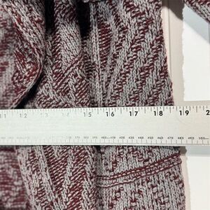 entro cardigan, womens tribal knit sweater, fringe hem cardigan, maroon gray boho sweater, open front acrylic cardigan, southwestern cardigan womens, medium size cardigan sweater