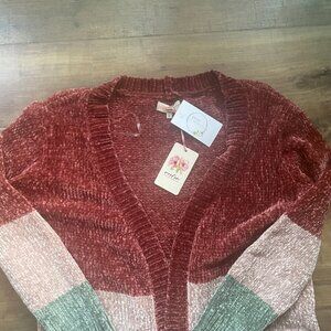 Entro Color Block Chenille Cardigan Sweater Size Small NWT Soft Cozy Fall Layeri