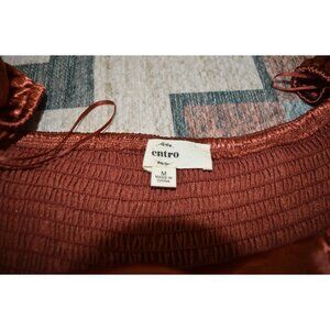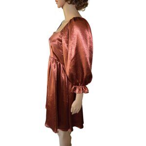 Entro Copper Brown Satin Baby Doll Peasant Sleeve Dress Women Size M Fall Boho