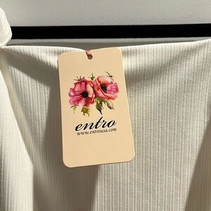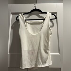Stylish cream ribbed top. Features a subtle texture. Ideal for versatile wear. Scooped back. New with tags.