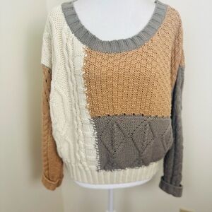 This Entro sweater combines a cream and tan color palette with a crew neckline for a classic look. The textured knit patterns add a modern twist, making it a versatile piece for any casual occasion. Its relaxed fit ensures comfort and style throughout the day.