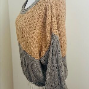 Entro Cream and Tan Crew Neck Sweater with Textured Knit