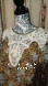 Dark golden mustard colored floral baby doll dress with crochet detail along the neck and shoulder line.