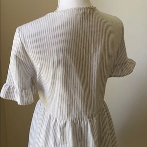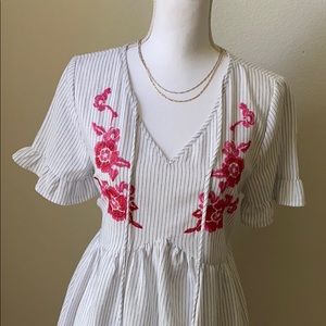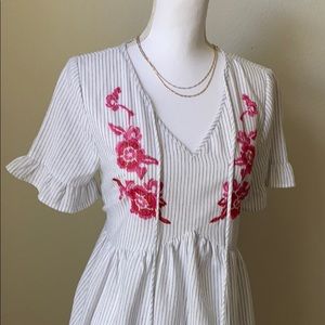 Super cute pinstriped Entro Dress, with beautiful floral detailing and adorable tassels to match. Really light weight and breathable fabric.