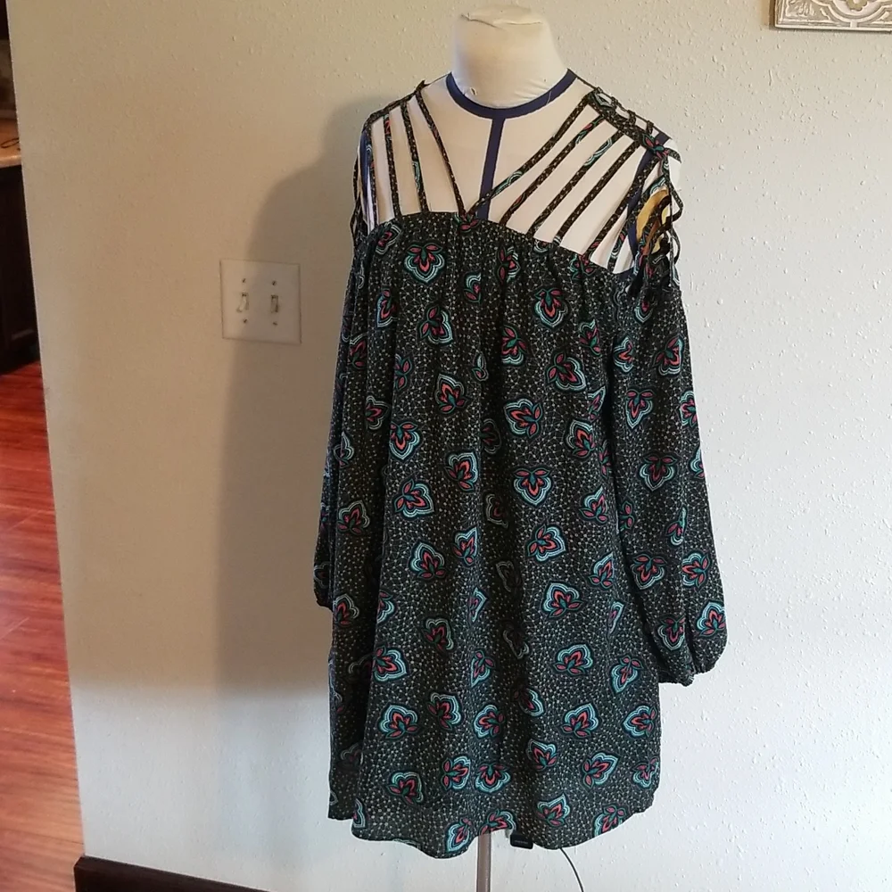 Edgy and unique cutouts on the neckline, back, and sleeves makes this a unique boutique dress! Only worn once to a wedding. Like new condition.