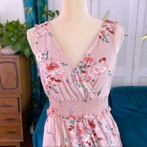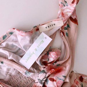 Entro | Ellie Floral Print Surplice Sleeveless Smocked Top Ruffle Cottage Small