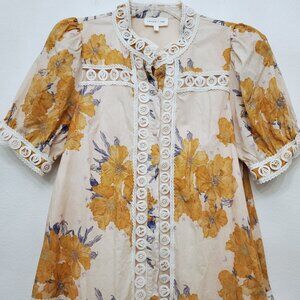 Entro Embroidered Floral Coquette Romantic Boho Peasant Cotton Dress Size Large