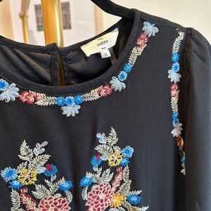 ✨ Pre-loved in great condition! Entro Floral Embroidered Black Mini Dress with Flutter Sleeves- easy summer staple you can throw on or dress up!