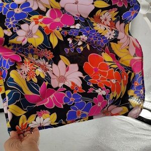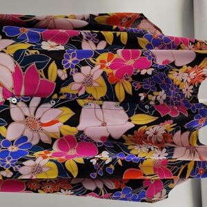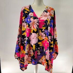 Entro Floral Print Blouse 1X Button Down V Neck Relaxed Oversized Multicolor