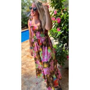 Entro Floral Smocked Maxi Dress size small