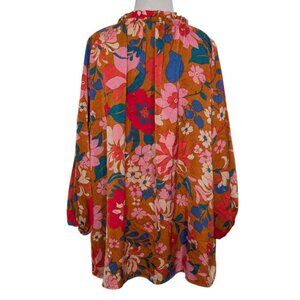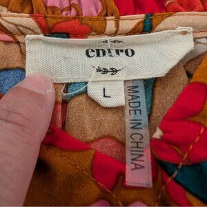 Entro Floral Vibrant Blooms Shirt Womens Size Large Orange Oversized Blouse
