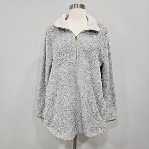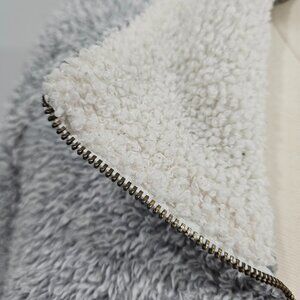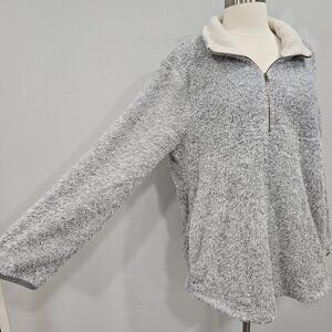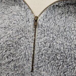 Entro Fuzzy Gray Sherpa Quarter Zip Long Sleeve Grey Pullover Sweatshirt Medium