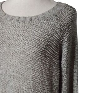 Entro Gray Open Knit Crochet Fringe Trim Half Sleeve Top Nylon Blend