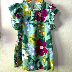 Entro Green Floral Print Ruffle Flutter Sleeve Medium
