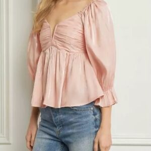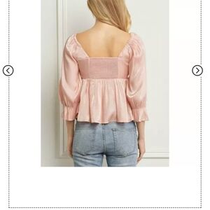 New with tags. This tag states $38. If you search this item online, Target was selling for$52 and is sold out. This charming iridescent baby doll pink blouse by Entro features a flattering ruched design and a stylish peplum silhouette. The 3/4 sleeves add a touch of elegance, making it perfect for both casual and dressy occasions. Crafted from a light and airy fabric, it offers a comfortable and chic fit.