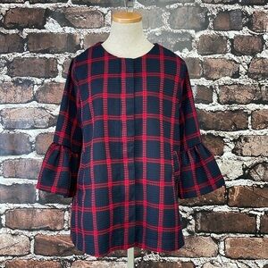Entro Jacket Women's M Medium Blue Red Plaid Flare Sleeves Waffle Full Zip