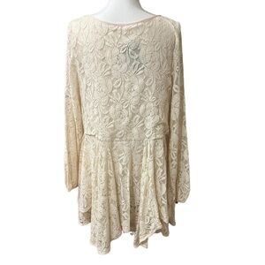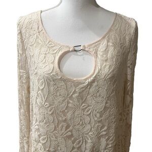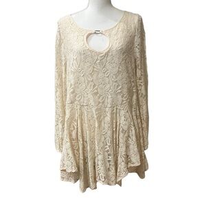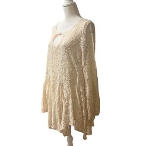 Entro Lace Asymmetrical Hem Mini Dress Long Sleeves Keyhole Detail Women’s L NWT
