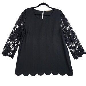 Entro Lace Sleeve Top Blouse Women's Large Black Pullover Boho Peasant Oversized