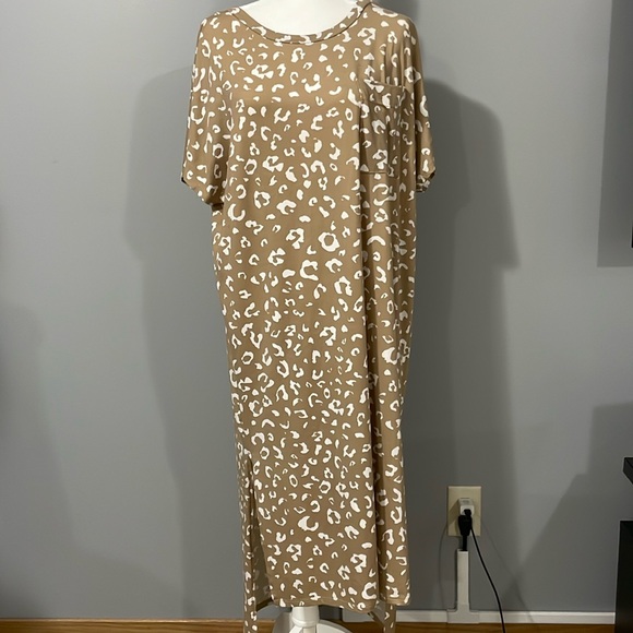 Super soft and extremely stretchy! Size L but fits more like an XL. I’m 5’3 and it hits my ankles. Worn once.