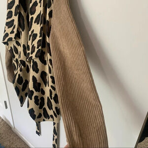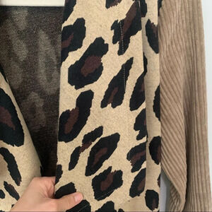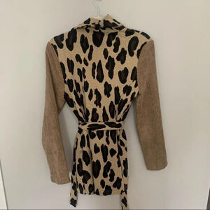 Entro Leopard Print Cardigan/ Coat Wrap style with Corduroy Sleeves Smal