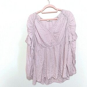Entro Light Purple Swiss Dot Surplice Neckline Babydoll Blouse Size Large