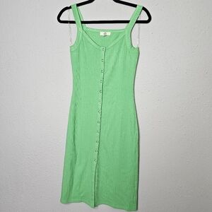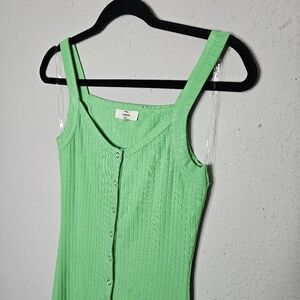 Entro Lime Green Ribbed Snap Front Midi Tank Dress Maternity Stretch Size S