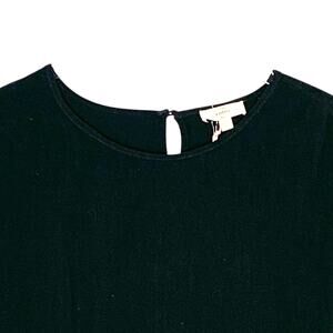 Entro M NEW Black Round Neck Ruffle Sleeve Casual Relaxed Shirt Linen Blend