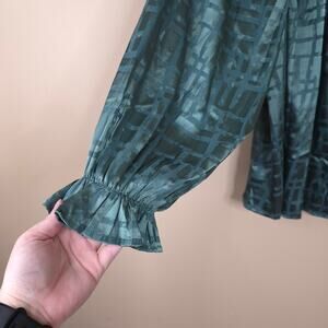 Entro Metallic Long Sleeve Mock Neck Blouse in Green Size M