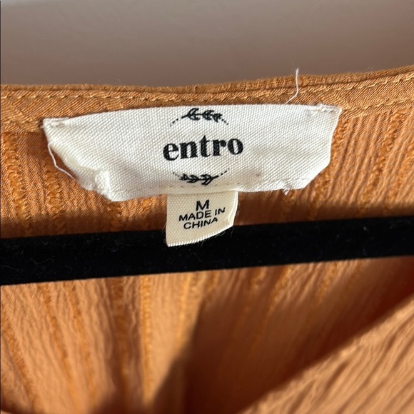 Entro Mustard V-Neck Tiered Ruffle Skirt Long Bishop Sleeve Mini Dress. Pinstripe textured fabric with a loose-fitting bodice & smocked waist. Used great condition.Smoke free home. Same or next day shipping.