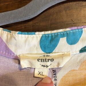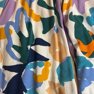 Preloved blouse with abstract design. Button-up style with long sleeves. Ideal for a stylish statement.