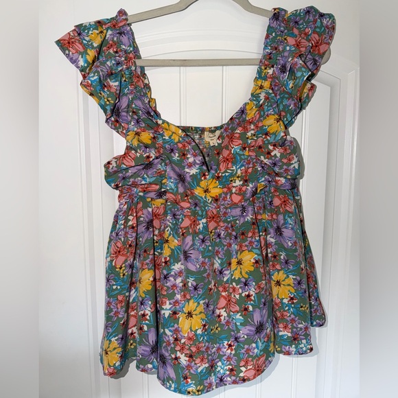 Entro Multicolor Floral Ruffle Blouse