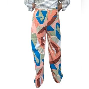 Entro Multicolor High Waisted Boho Wide Leg Abstract Geometric Print Slacks Pants M