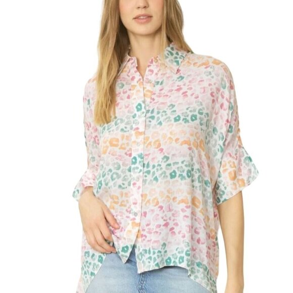 Entro NWOT Spotted Multi Button Top Colorful Leopard Print Oversized Lagonlook S