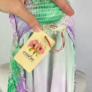 Entro | NWT Boutique Green & Purple Tie Dye Off the Shoulder Pleated Layered Top