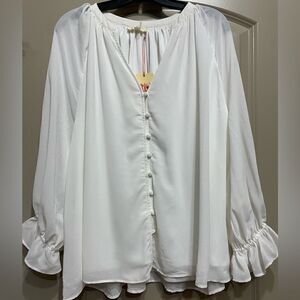 Entro NWT Solid Button Down Long Sleeve Top White Size Large