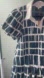 Stylish mini dress with a bold navy pattern. Features puff sleeves and a playful hem.