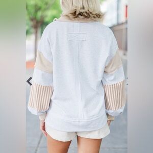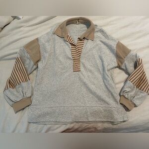 Entro Notched Collar Sweatshirt Colorblock Pull Over with Stripes small