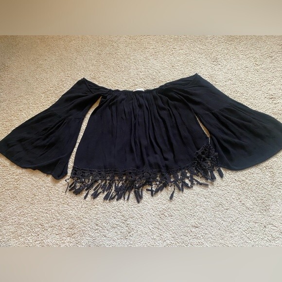 Entro Off-The-Shoulder Fringe Blouse