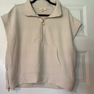 Chic off-white jacket with ribbed texture. Features a sleek zipper front.