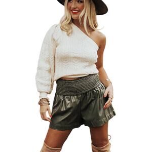 Entro One Shoulder Chic Sweater Women’s Size Small Tan Chunky Cable Knit NWT