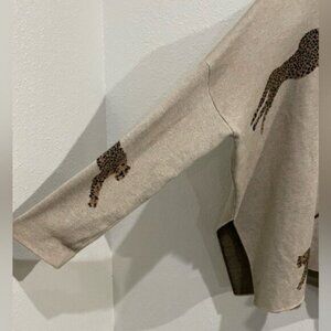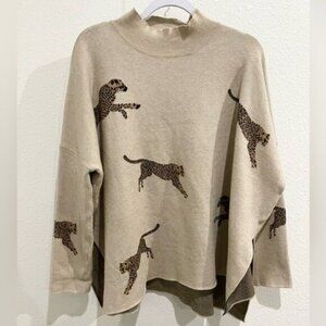 Entro Oversized Cheetah Tan Sweater Contemporary Soft Mock Neck Shabby Chic