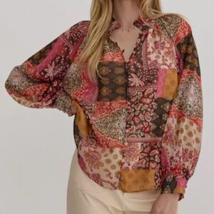 Entro Paisley Fall Print Shirt Size Medium NWT
