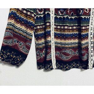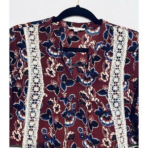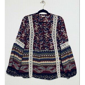 Entro Peasant Top Womens Medium Floral Lace Crochet Trim Elasticized Cuffs Boho