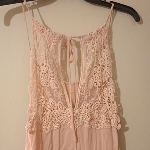 This stunning pink dress by Entro features a sleeveless halter neckline and an asymmetrical high-low hemline, perfect for a cocktail night out. The embellished bodice adds a touch of elegance, while the flowing skirt creates a romantic silhouette.