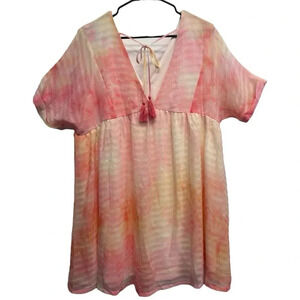 Entro Pink Lemon Yellow Tie Dye Mini Relaxed Fit Dress Beach Cover Up Size L