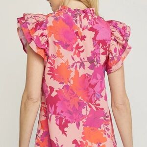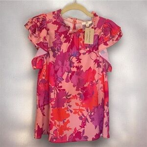 Entro Pink Purple Floral Ruffle Sleeve Summer Casual Blouse Top NWT- Small