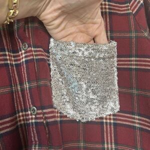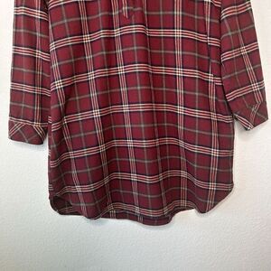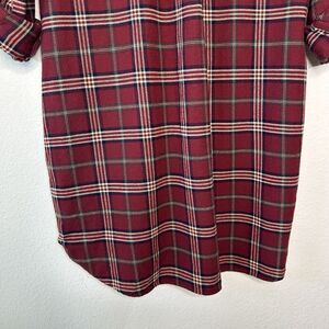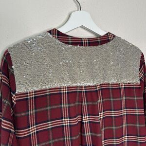 Entro Plaid Red Flannel Pocketed Roll Tab Sleeve Tunic with Sequin Trim L